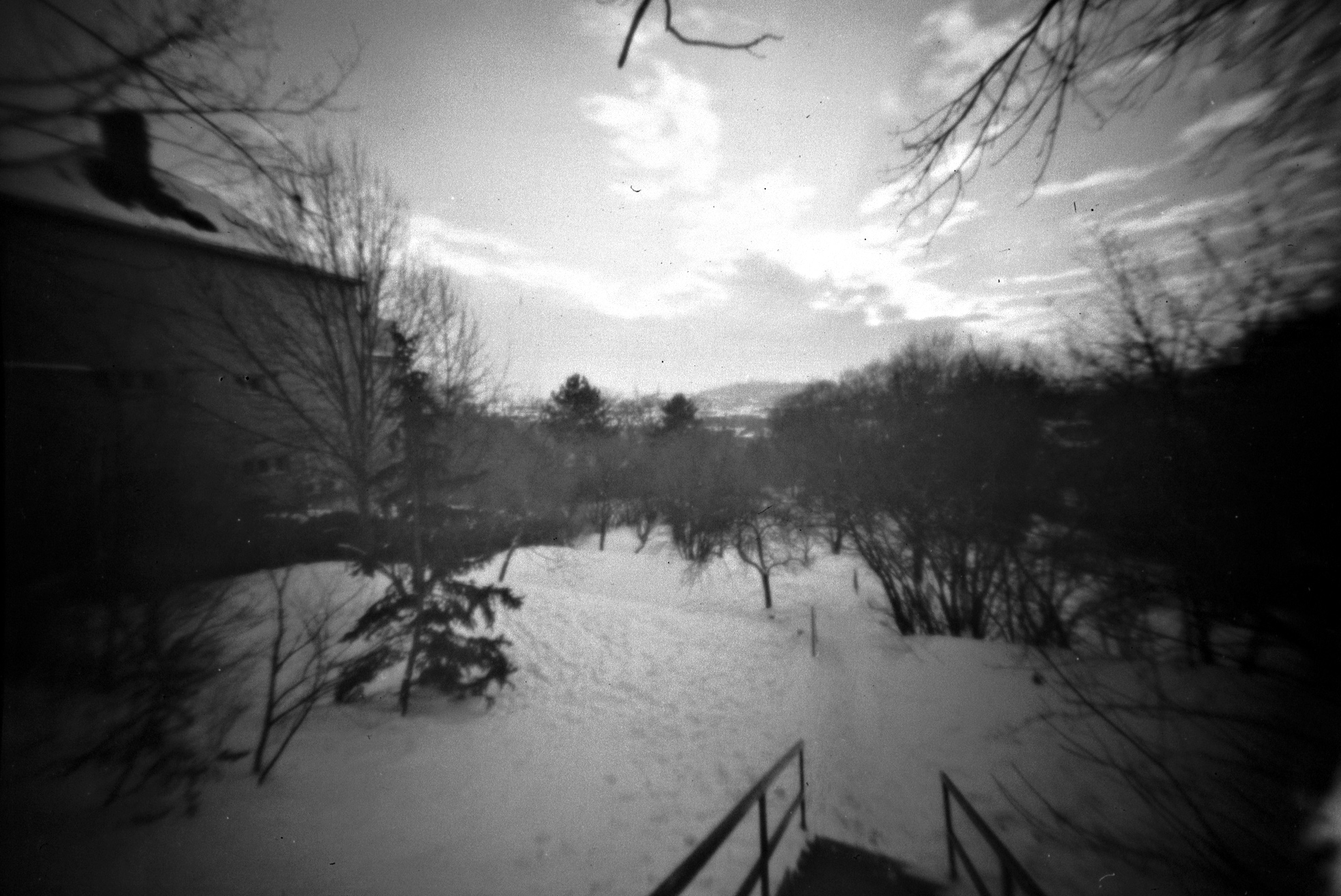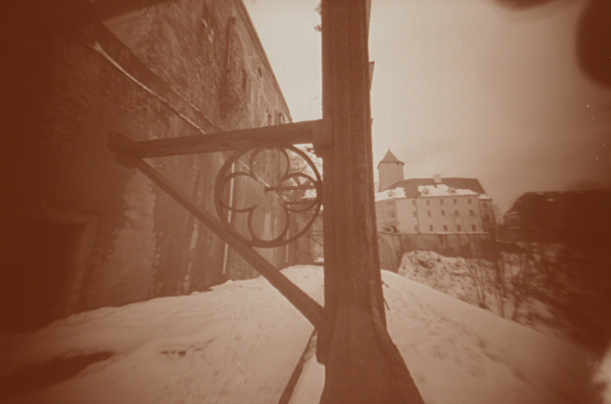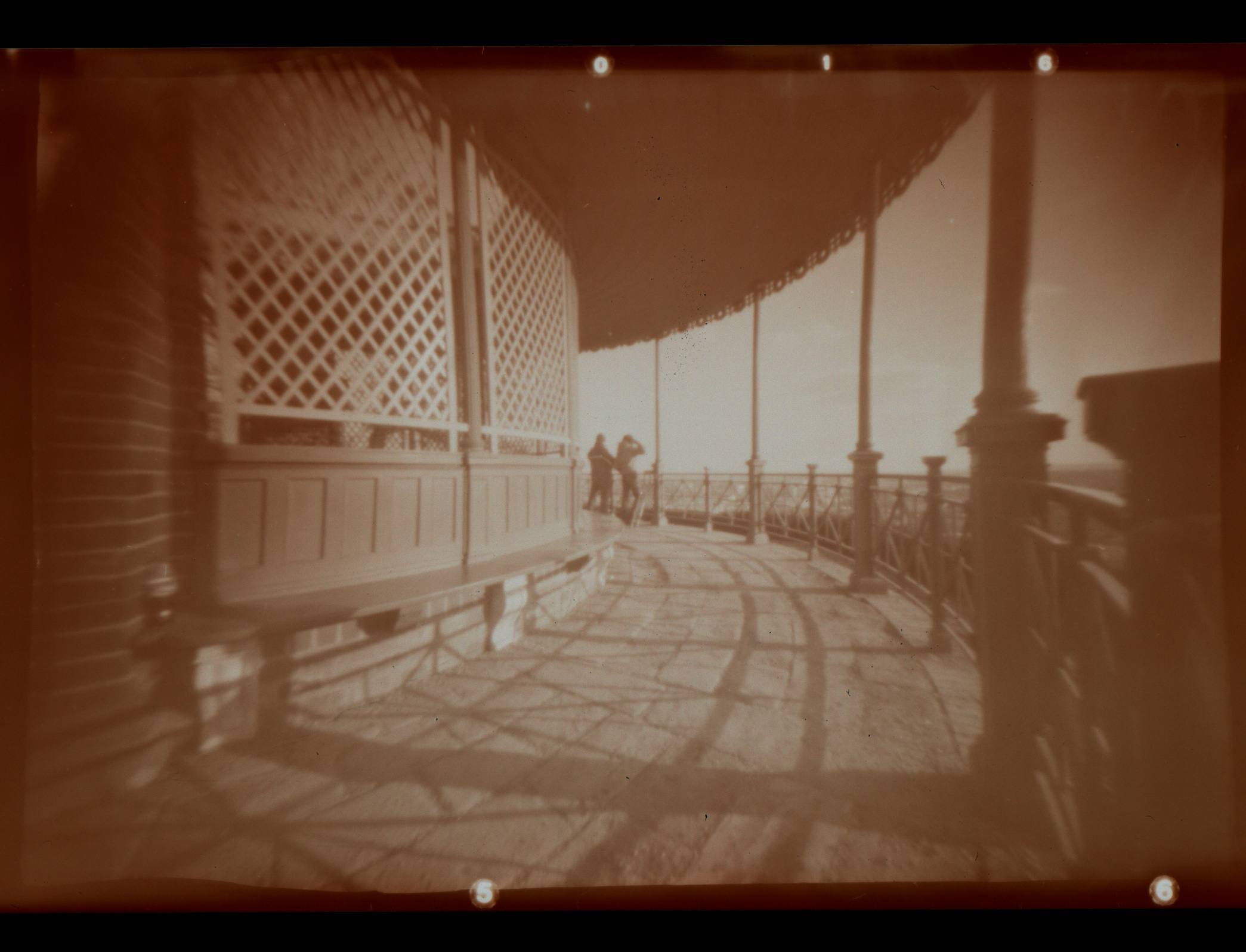 Doba osvitu (expozice) se může různit podle velikosti dírky. Existují na to dokonce vzorečky, které propočítají dobu na základě velikosti dírky, rozměrů filmu, vzdálenosti atd., ale jako nejjednodušší se ukázalo experimentovat. Svitkový film s citlivostí 100 ASA (klasický) má poměrně slušnou pružnost, takže se nic nestane, pokud budete osvěcovat trošku dýl nebo naopak kratší dobu. Já používám výchozí čas 5 vteřin a podle světelných podmínek s citem buďto přidám anebo (málokdy) trochu uberu.