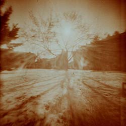 Úroveň číslo 2 – jednoduchá dírková komora z krabičky od čaje. Místo krabičky se dá použít v podstatě cokoliv jiného, co má podobný tvar. Tato dírková komora byla moje úplně první filmová a slouží spíš na vyzkoušení než pro někoho, kdo si chce nafotit pár trošku kvalitnějších pinhole-snímků. Její výhoda spočívá v tom, že si můžeme poměrně levně a bez námahy vyzkoušet, jestli se nám chce podstupovat nějaké složitější fotografické peripetie a nebo je toto jenom slepá cesta a zůstaneme u digitálu.
