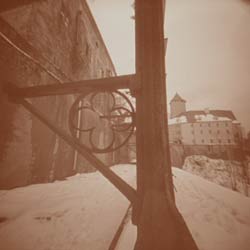 Kolorovaná fotografie camery obscury na Oybíně