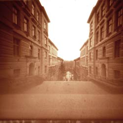 Rektilineární zobrazení je druhým specifikem dírkové fotografie. Opět začneme z druhého konce, od fotografie s klasickým objektivem. Jistě jste si už u někdy všimli, že u fotografií, pořizovaných na „krátké ohnisko“ se projevuje tzv. soudkovitost. Je to dáno tím, že vzdálenost středu objektivu je jiná od středu a od kraje filmového políčka. Velice dobře vidět je to např. u architektury, kde jsou najednou rovné linie zahnuté jakoby kolem středu a vyfocené věže vypadají, jako by uprostřed byly nafouklé. Tak tohle se nám u dírkové fotografie nestane. Kvůli tomu ale budeme muset nějak kompenzovat rozdílné vzdálenosti jednotlivých částí filmu od dírky a tato kompenzace se projeví právě rektilineárním zobrazením. Všechny přímky na naší fotografii zůstanou v naprosto nezměněné perspektivě, rovnoběžky budou rovnoběžky, z přímek budou přímky, ale daní za to bude, že se nám fotka ke krajům bude protahovat. Při pohledu na snímek to vypadá, jako bychom záběr fotili ve velké rychlosti čelem ke směru pohybu, a kraje jsou pak dynamicky rozmazané.